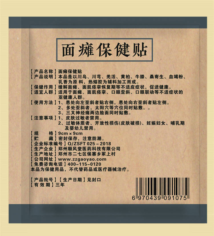 顺风堂面瘫保健贴口眼歪斜面瘫后遗症膏穴位贴口眼联动痉挛吊线风