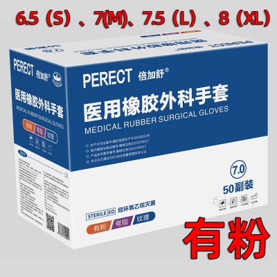 倍加舒医用外科手套无粉橡胶手术手套有粉牙科检查手套50双正品
