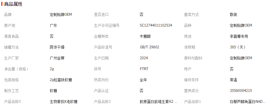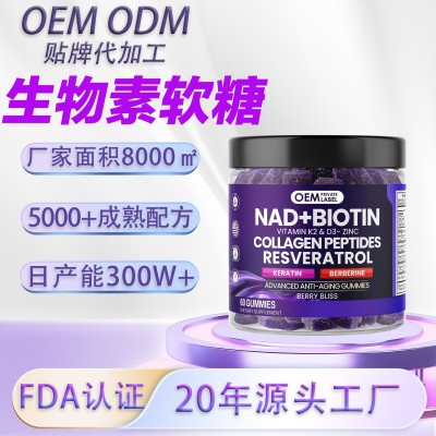 白藜芦醇角蛋白NAD+生物素抗K老软糖胶原蛋白肽维生素K2 & D3软糖