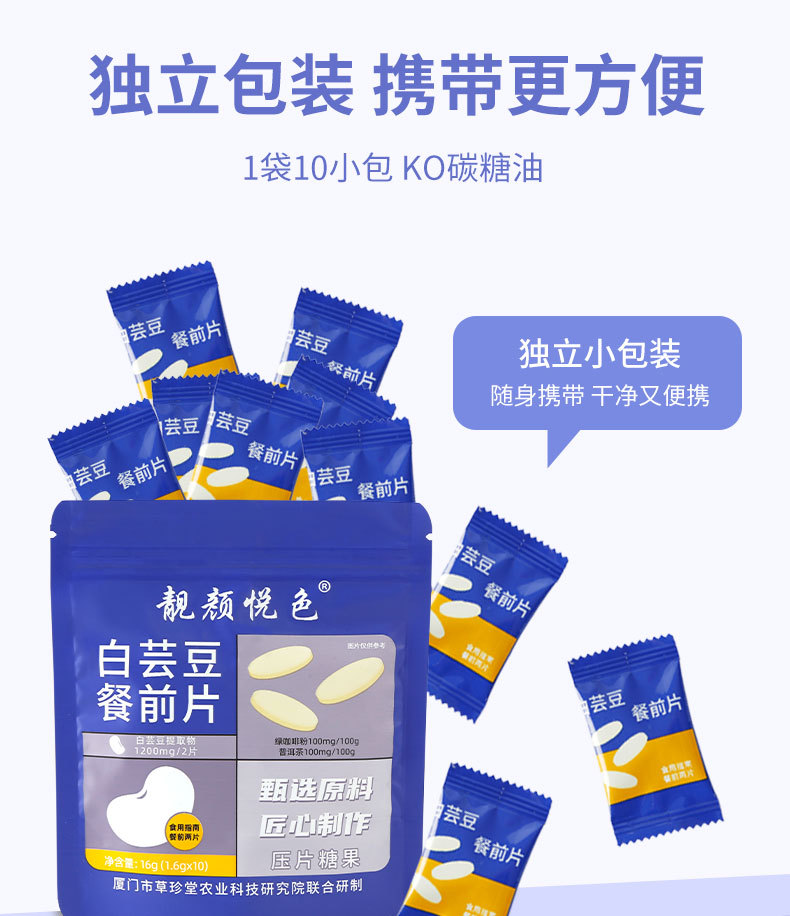 白芸豆餐前片阻拦碳水吸收膳食纤维压片糖果批发代发白芸豆餐前片