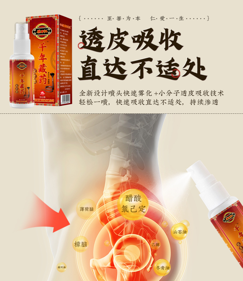 善本仁千年藏药蛇骨液会销礼品缓解腰间胫骨疼痛喷剂代发包邮