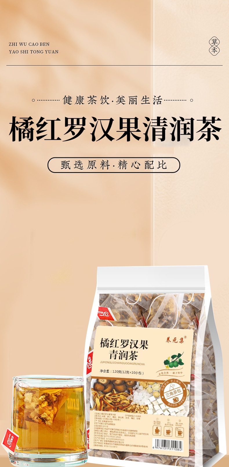 橘红罗汉果清润茶网红同款罗汉果雪梨茶三角包组合茶橘红 罗汉果茶