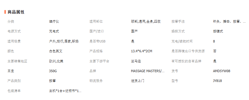 产品出厂配置为:主机*1台+说明书*1张+一托四电极导线*2条+激光线*1条+按摩贴片*8片+USB充电线*1条。如需加配充电器电源插头可联系客服务,电源插头分欧规、美规、中规三种。电源插头每个另需加1.5元成本。