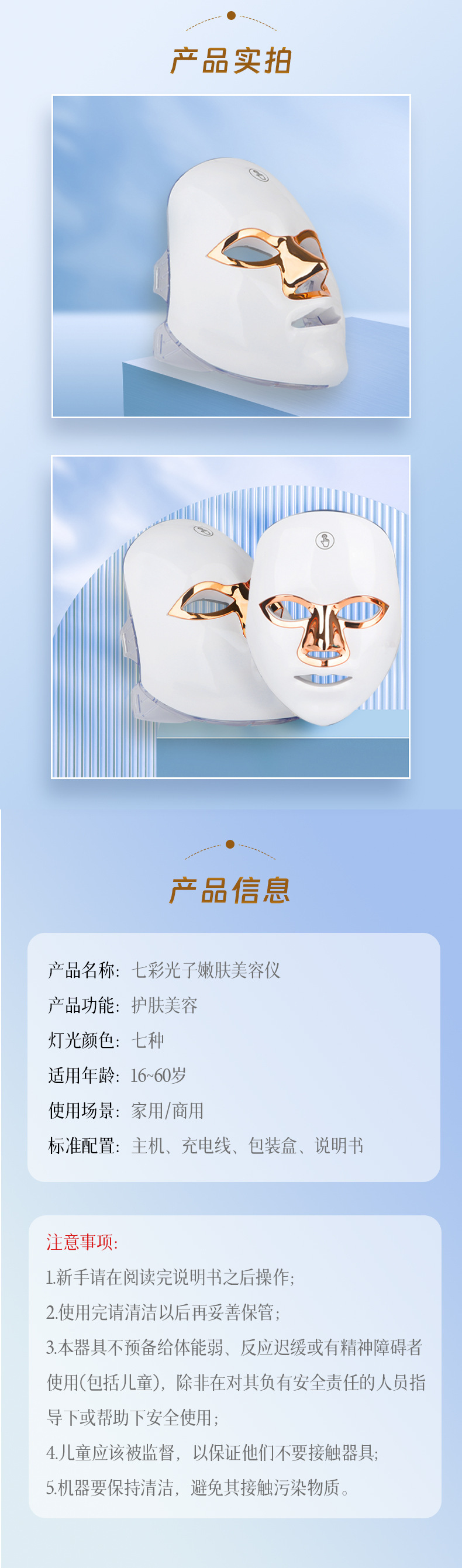 充电款 手动触摸式led美容面罩七彩光子嫩肤美容仪脸部面膜仪器厂