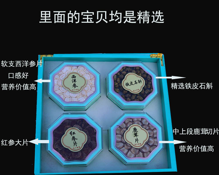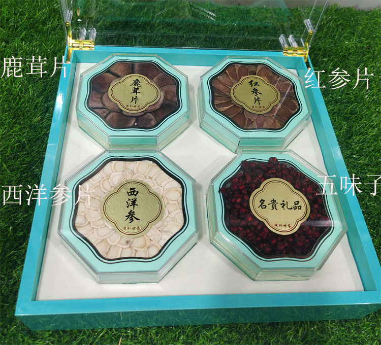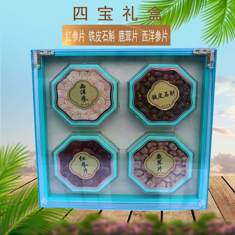 东北鹿茸红参片西洋参片礼盒套包装盒皮石斛四宝礼盒年节礼品