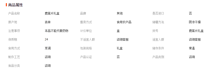 | 主营产品或服务 | 主营产品或服务: 鹿茸; 鹿鞭; 林蛙油; 山参; 虫草; 鹿胎; 野山参; 西洋参; 高丽参; 红参; 东北特产; 蛤蟆油; 蛙油; 长白山蛤蟆油; 人参; 人参批发; 长白山人参; 送礼佳品; 东北人参; | ||