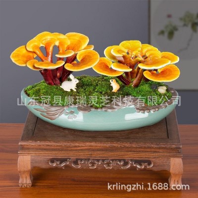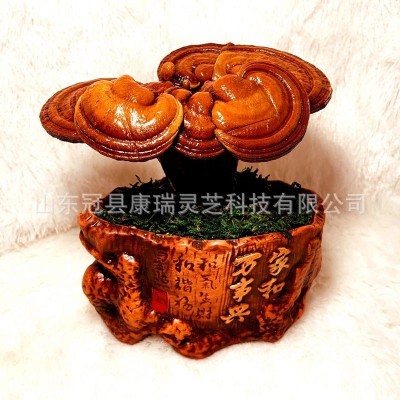 山东康瑞灵芝批发小型灵芝盆栽 鲜活灵芝花 出芝灵芝菌棒 赤灵芝