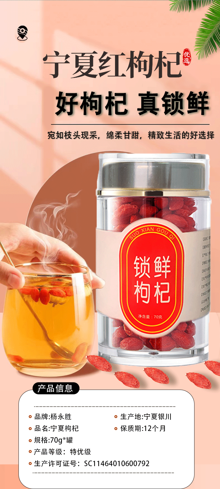 杨永胜锁鲜枸杞宁夏枸杞子特级免洗头茬特优大颗粒红芶杞散货批发