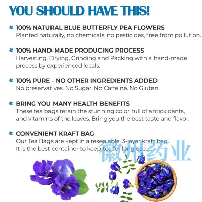 butterfly pea flower tea bags蓝色蝴蝶豌豆花茶包 干蝴蝶豌豆茶