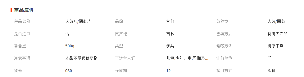 | 主营产品或服务 | 主营: 其他药食同源 其他滋补 参类滋补品 | ||