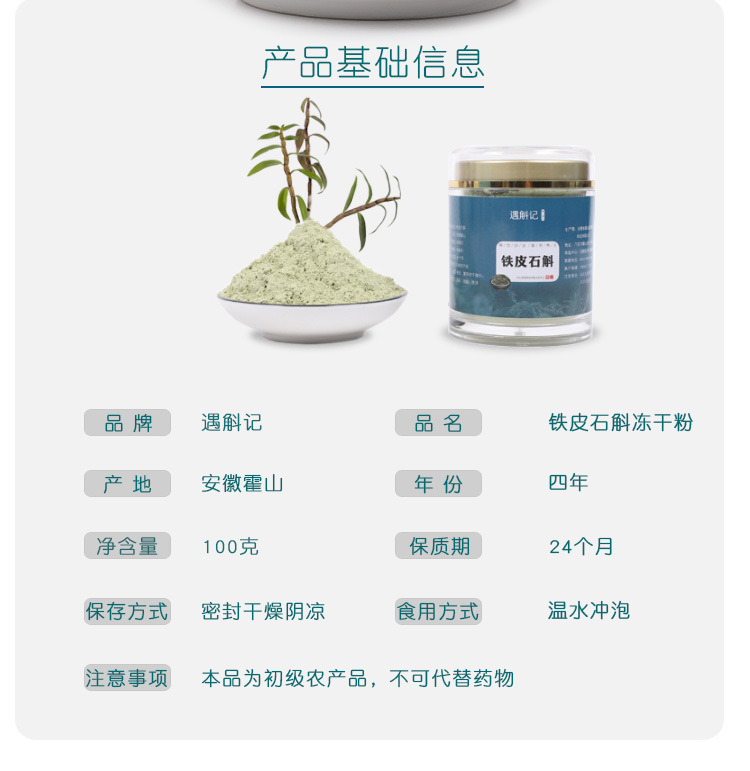 遇斛记 霍山铁皮石斛冻干粉 安徽四年生仿野生石斛超微晶粉100g装