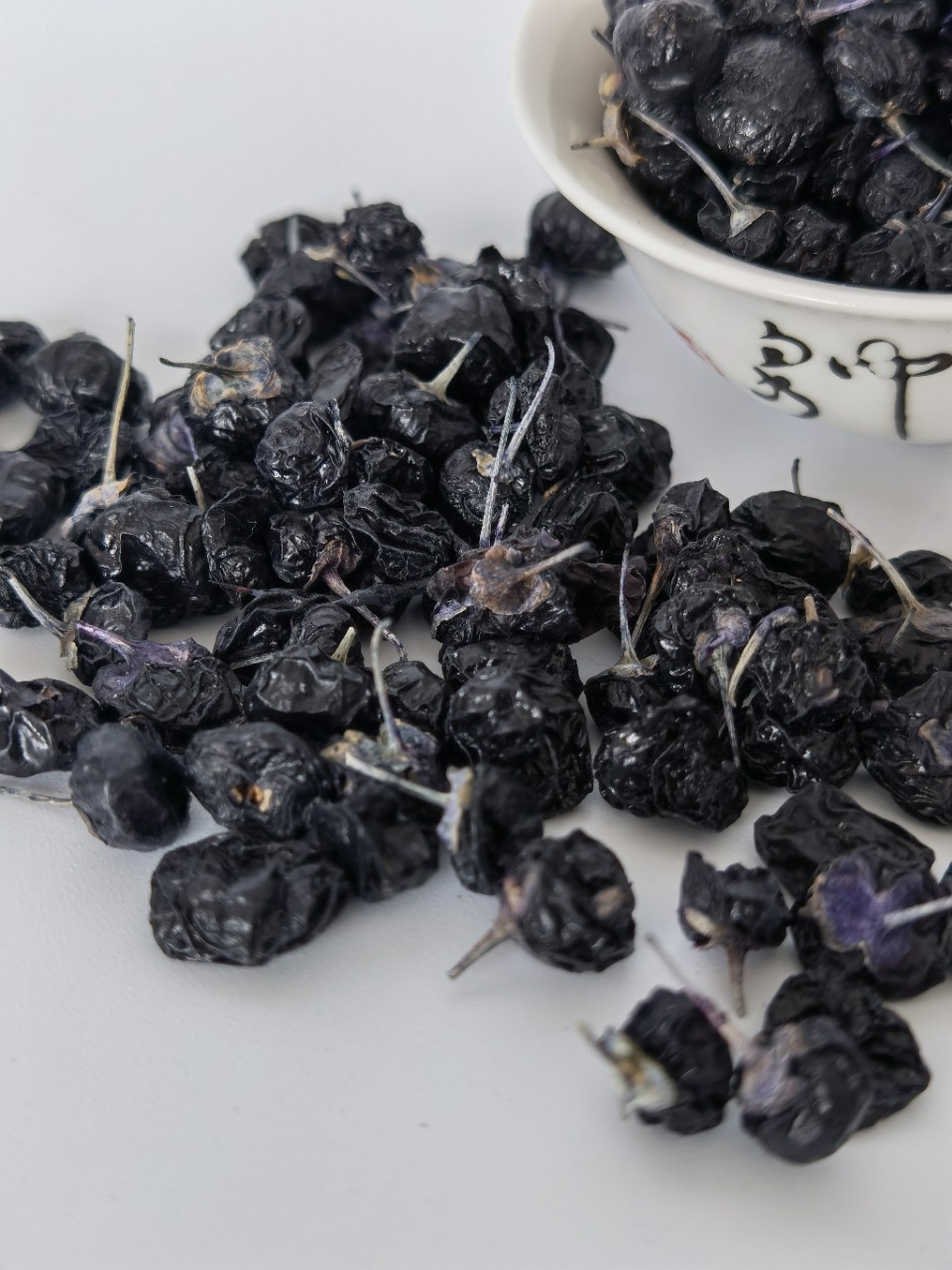 青海诺木洪戈壁滩上的草原上的黑枸杞非人工养植黑枸杞子