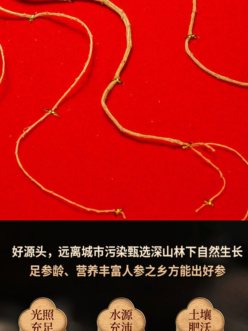 正宗长白山 人参礼盒装煲汤泡酒干参单支包装山参送礼人参礼盒装