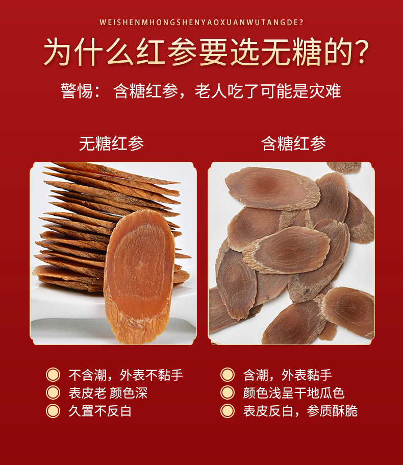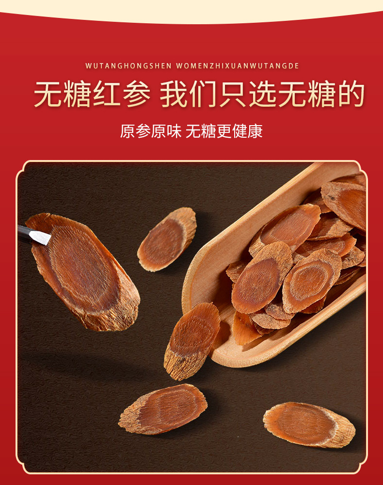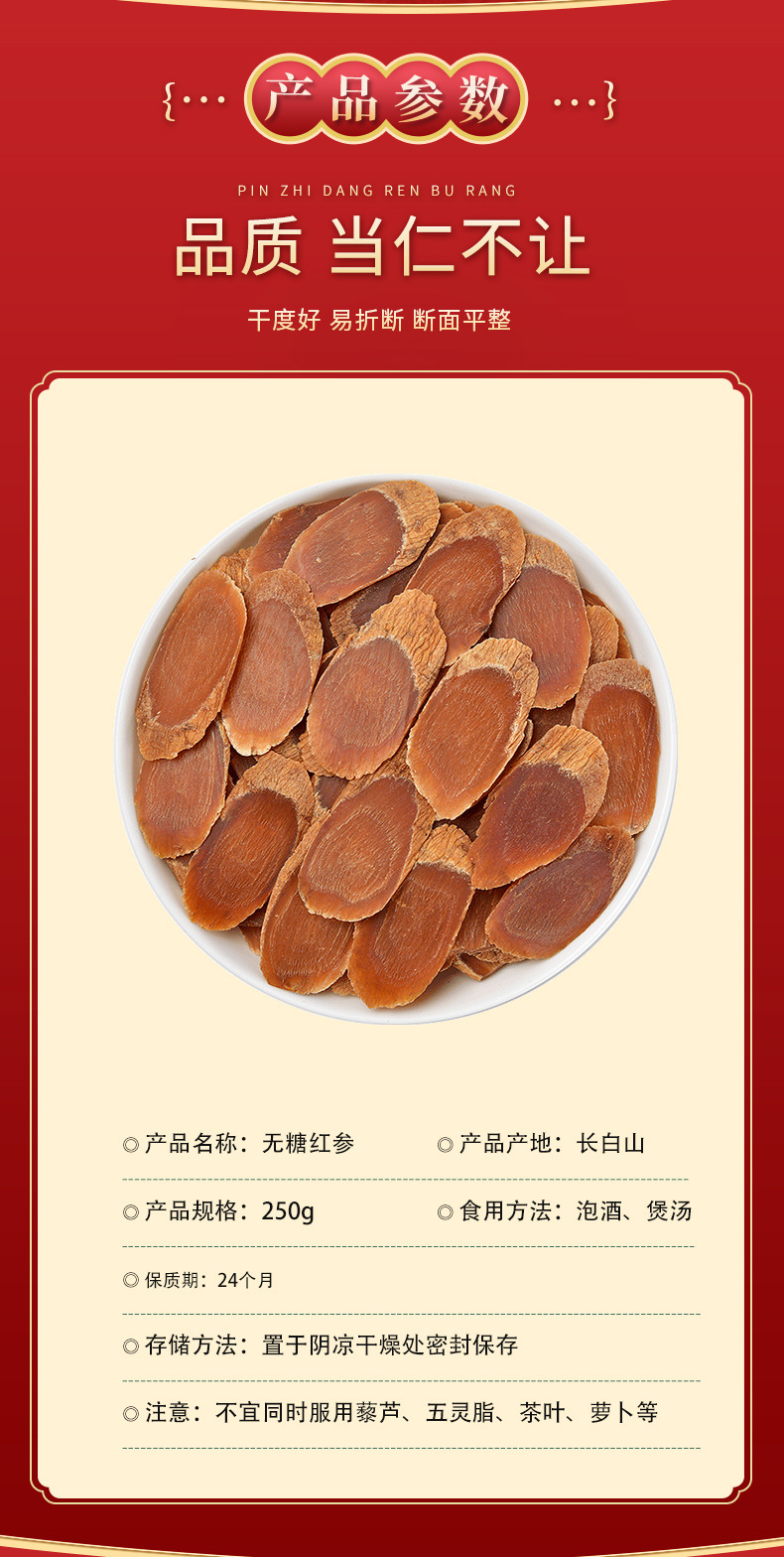 长白山红参片 不加糖红参大片 古法蒸制红参片 整枝切红参含片