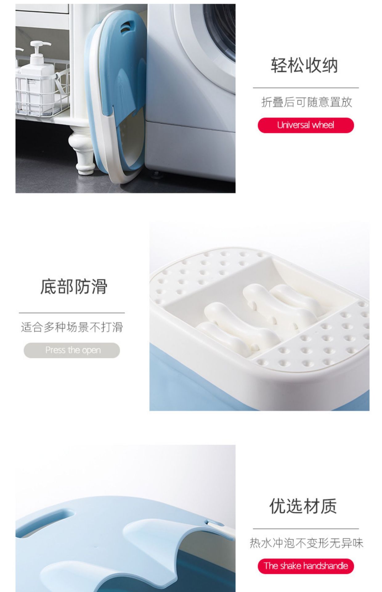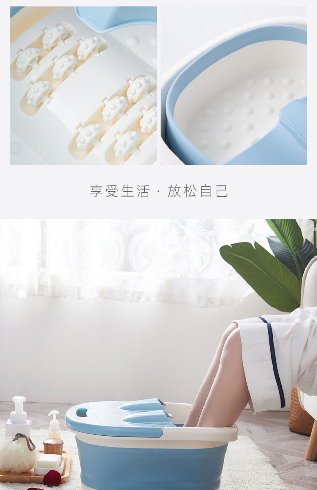 泡脚桶可折叠洗脚桶家用旅行加厚加深足浴桶可收缩滚轮按摩洗脚盆