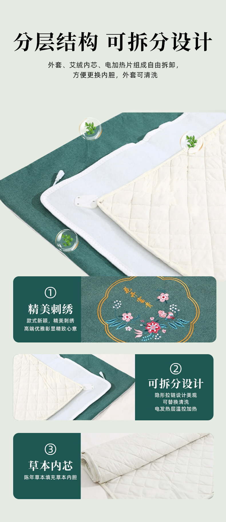 电加热艾灸毯艾草床垫艾绒包热敷褥子家用理疗床垫厂家批发电热毯