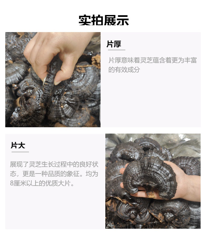 特别说明:本商品是袋装发货,每袋重量约500G左右(环境湿度略有影响,灵芝大小差异等),本店发货时重量均略大于500G/袋。