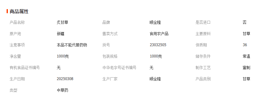 | 主营产品或服务 | 主营: 其他药食同源 其他滋补 甘草 | ||
