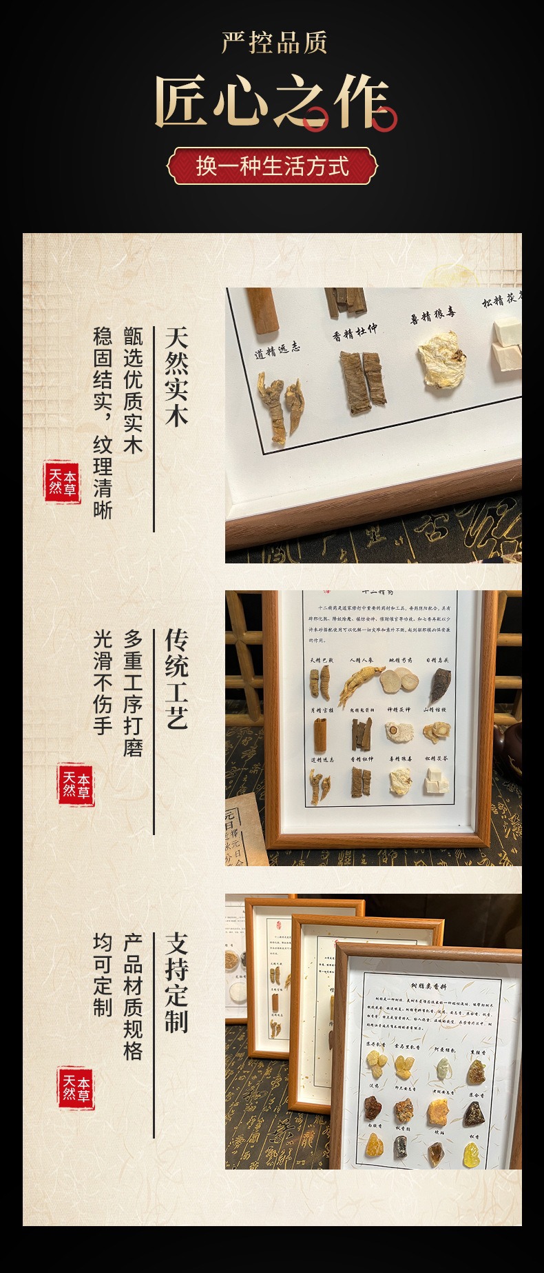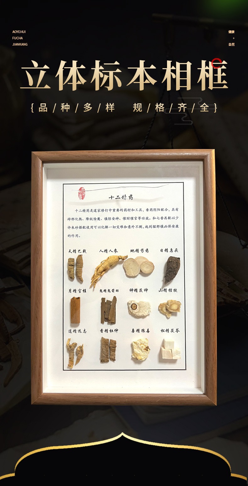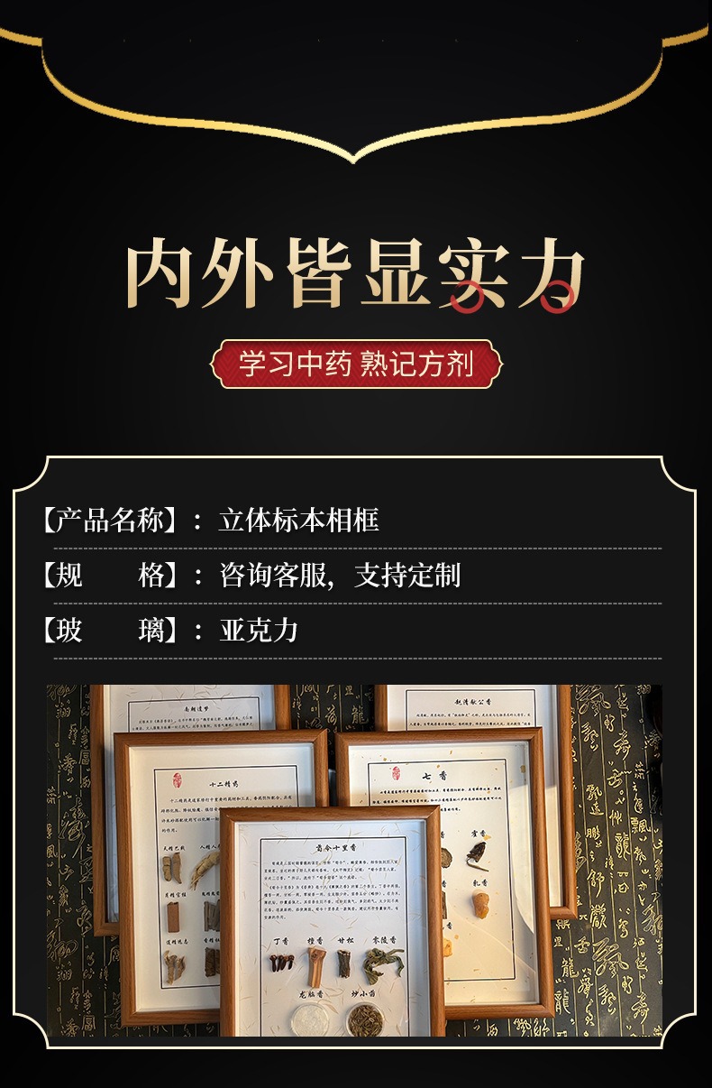 创意diy墙面标本展示墙方剂摆件饮品挂画中医养生馆成品干花相框