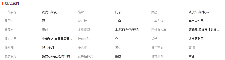 | 铁皮石斛花 | 550 | 530 | 500 |