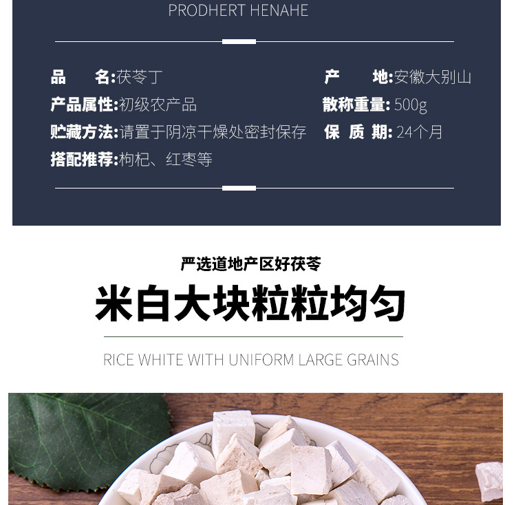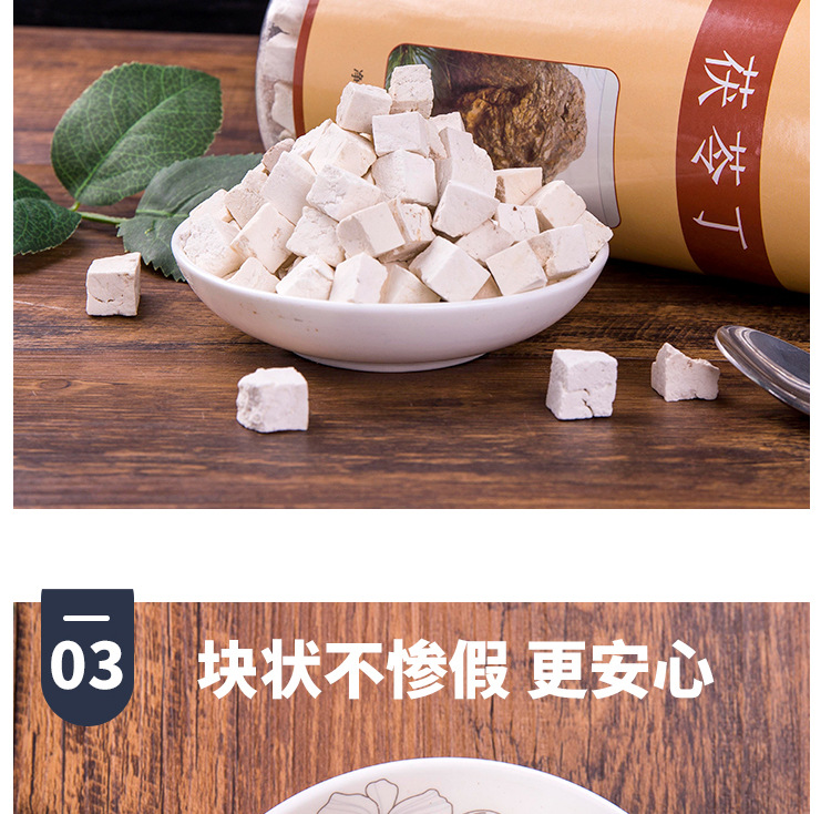 大别山茯苓丁500克罐装苓 散装批发白茯苓块/茯苓丁/茯苓粒新货