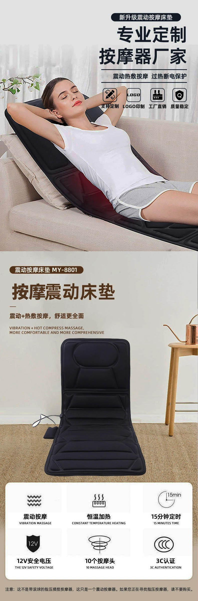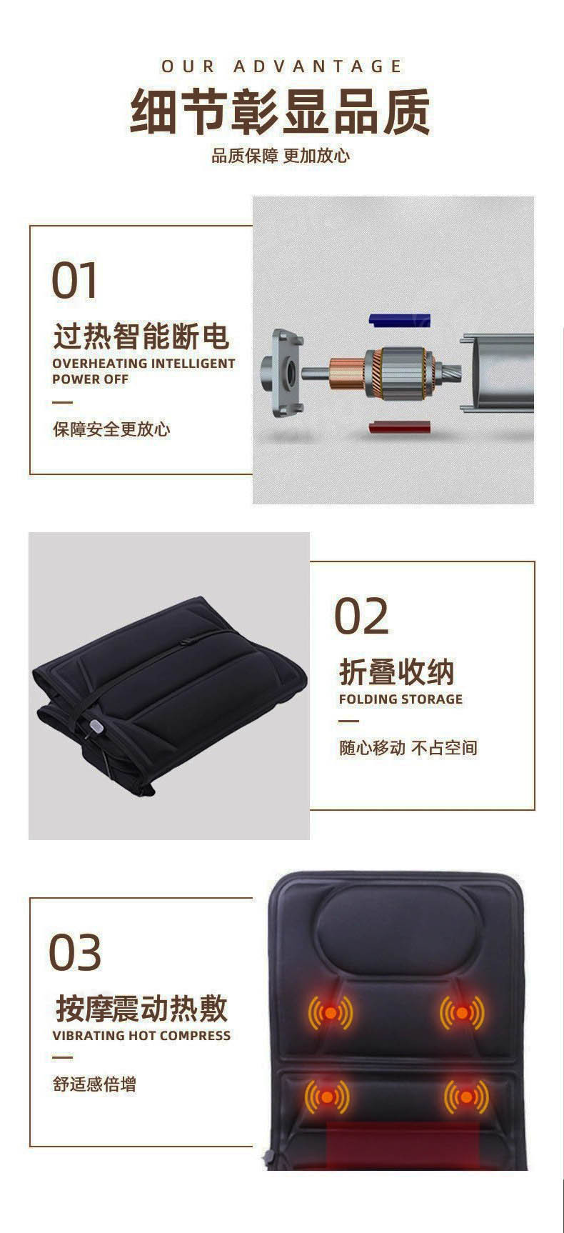 按摩床垫腰椎拉伸器电动多功能车载震动加热疲劳按摩靠垫床垫批发