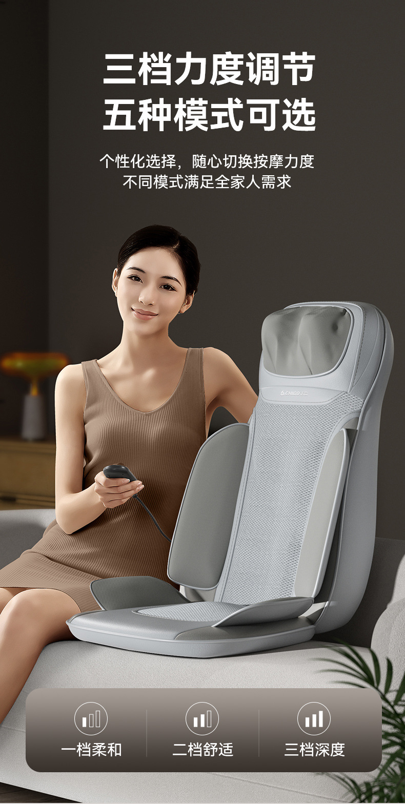 志高按摩椅家用腰背肩颈椎多功能全身揉捏加热按摩坐垫靠垫AM09