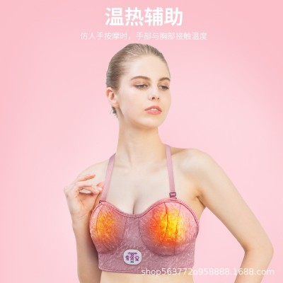 茗振跨境乳房按摩器揉捏震动按摩器无线充电智能热敷胸罩女用