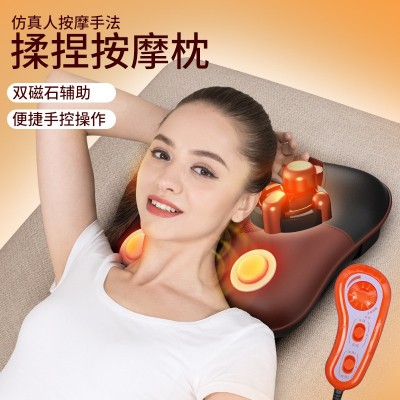茗振颈部按摩器腰部背部全身电动加热揉捏靠枕按摩枕家用一件代发