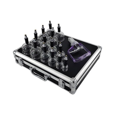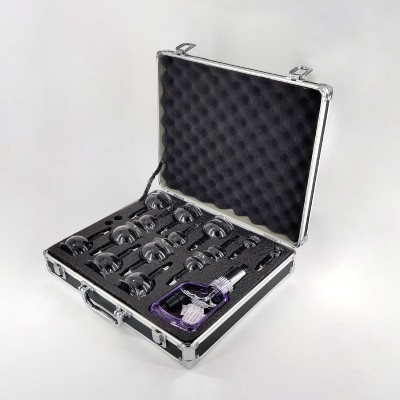 可定logo14头长嘴玻璃拔罐套装 家庭无火铝箱圆形玻璃拔罐器