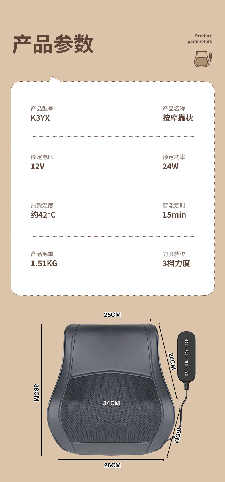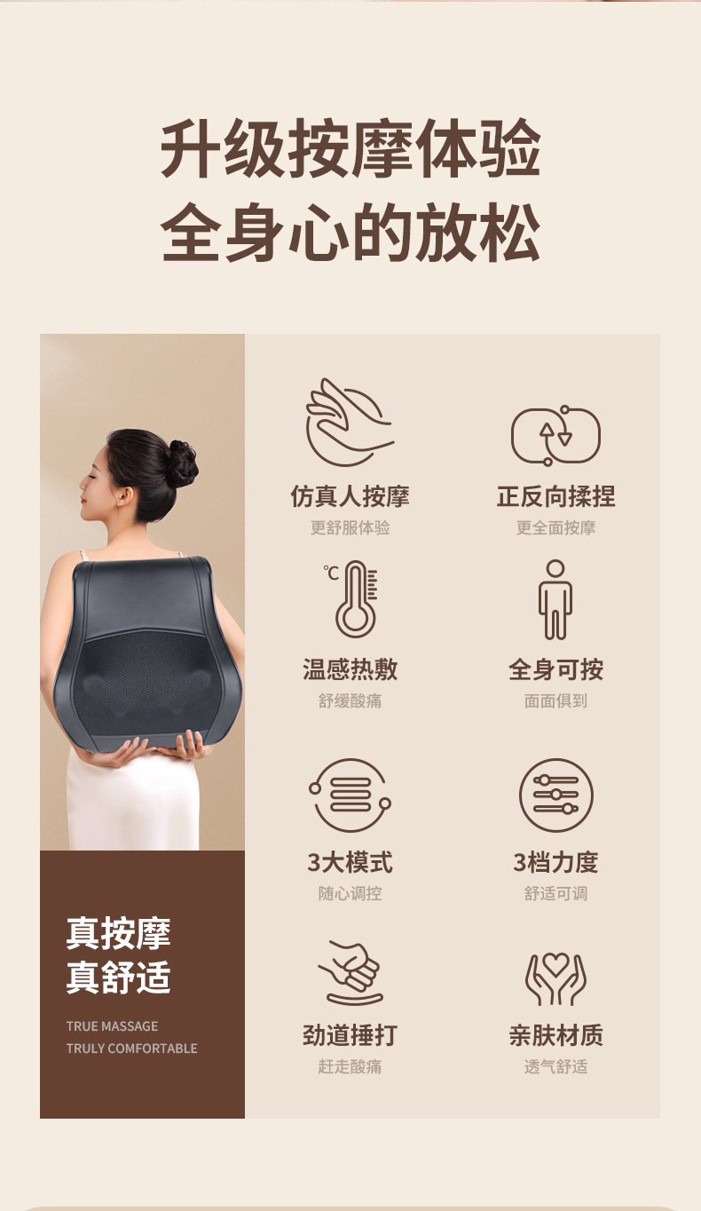 一件代发颈椎按摩枕 全身智能车载按摩靠枕 家用肩颈按摩仪器靠垫