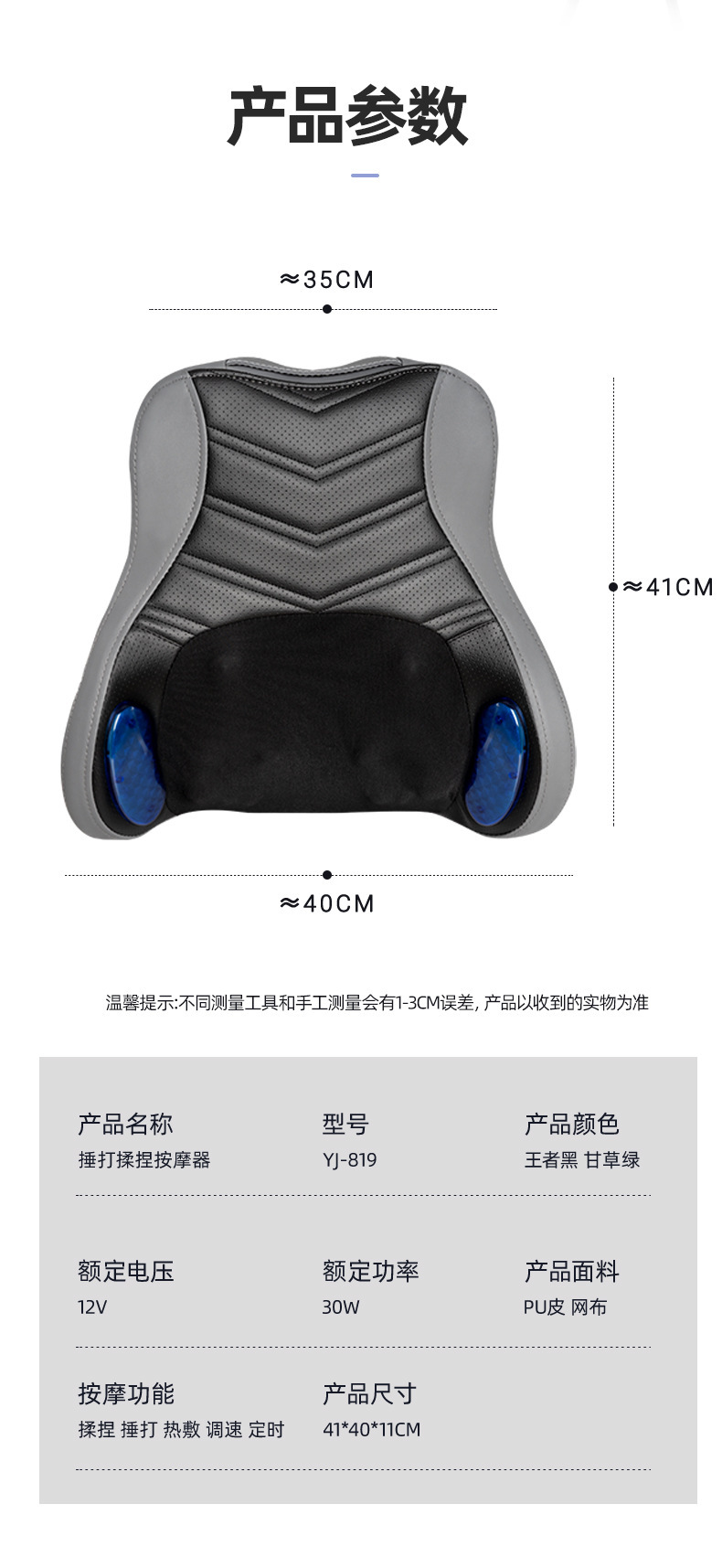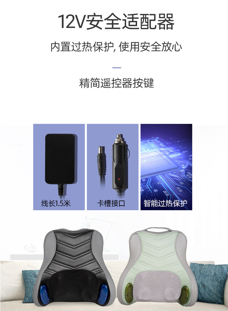 车载腰部按摩仪揉锤一体腰部按摩器车家两用腰椎揉捏加热按摩靠垫