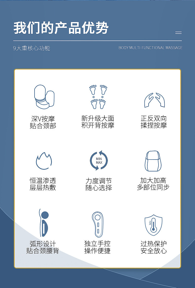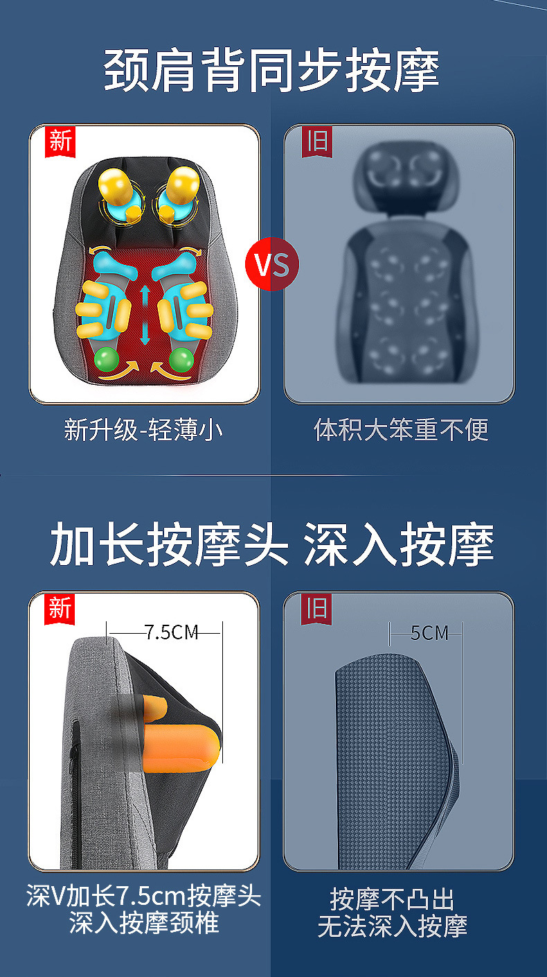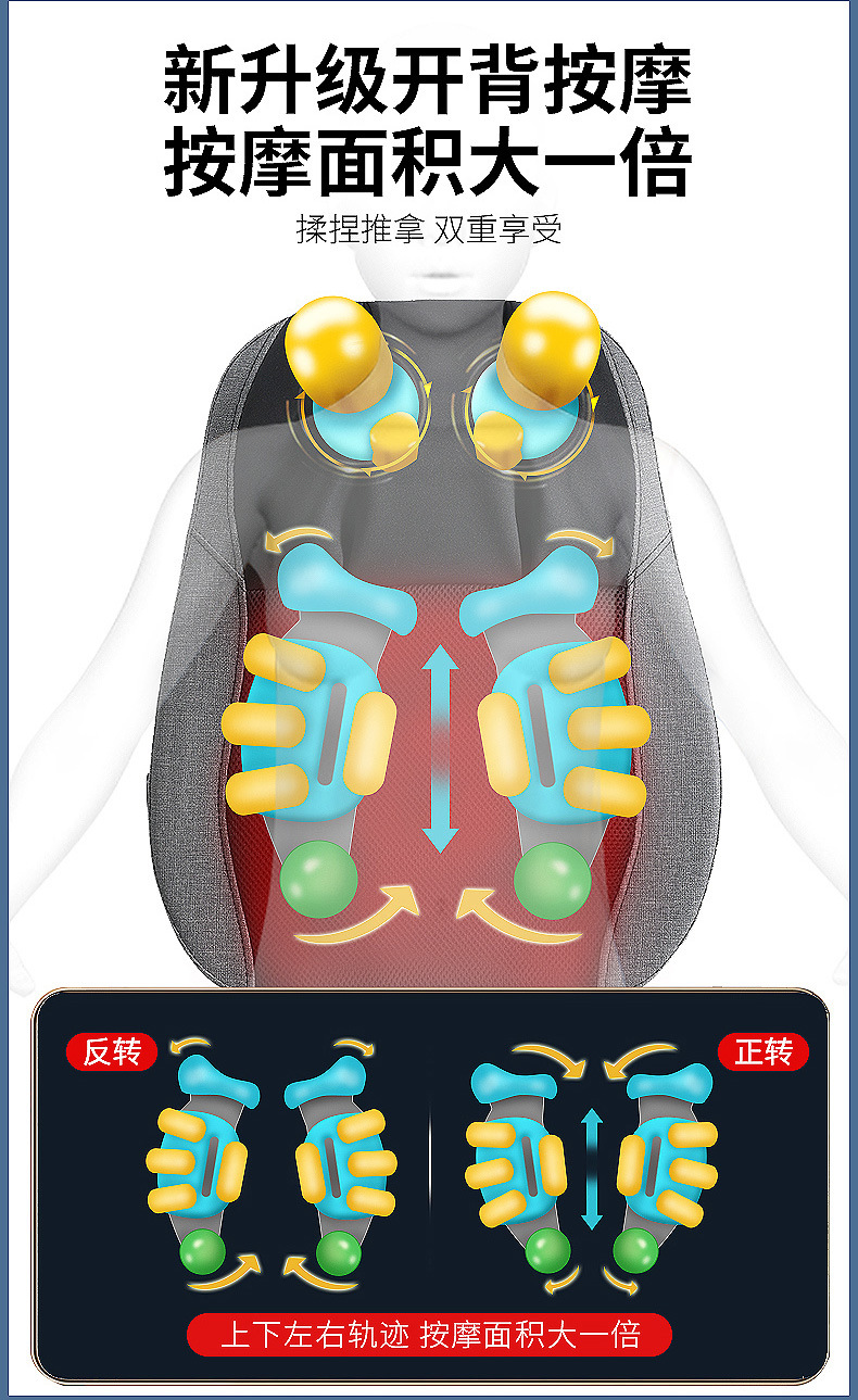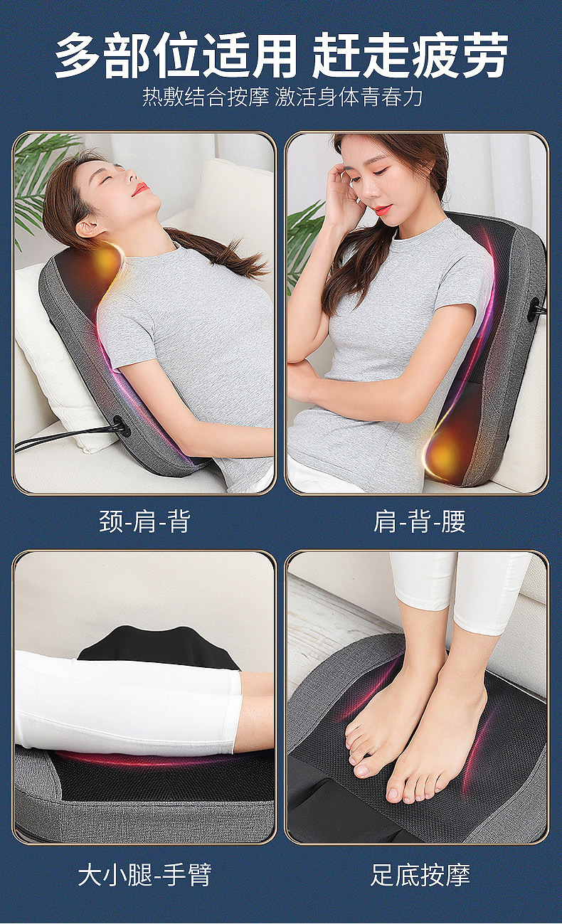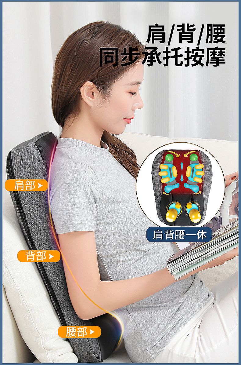 跨境腰部按摩器腰颈两用按摩垫深V肩颈按摩器泰式开背按摩靠垫