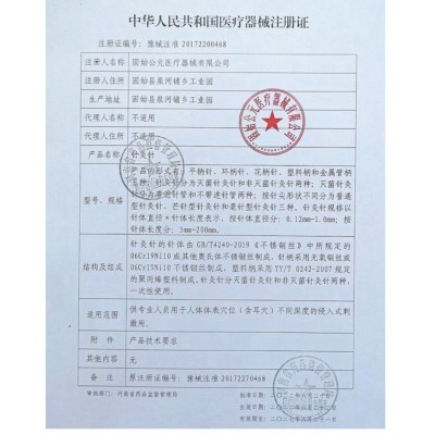 注册证编号:豫械注准20172200468