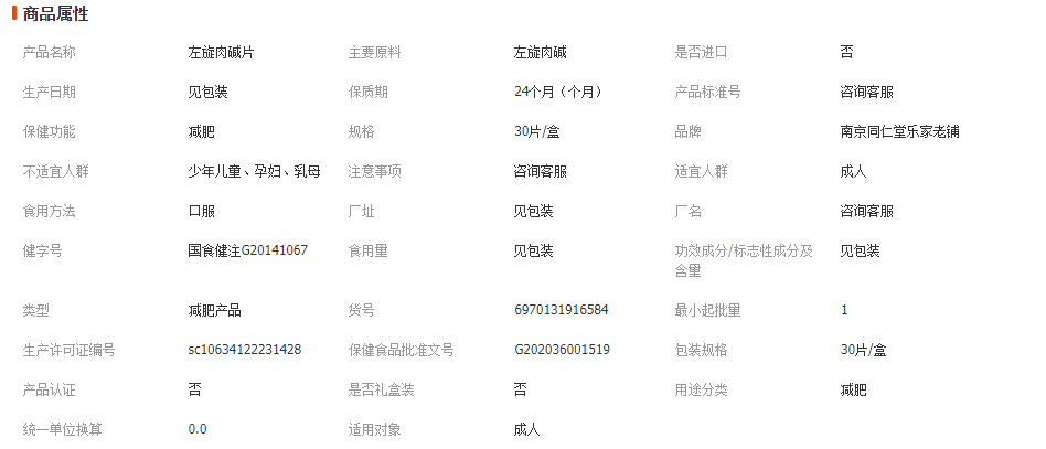南京同仁堂乐家老铺左旋肉碱片成人女性减重现货批发一件代发