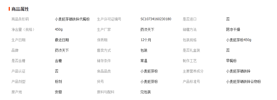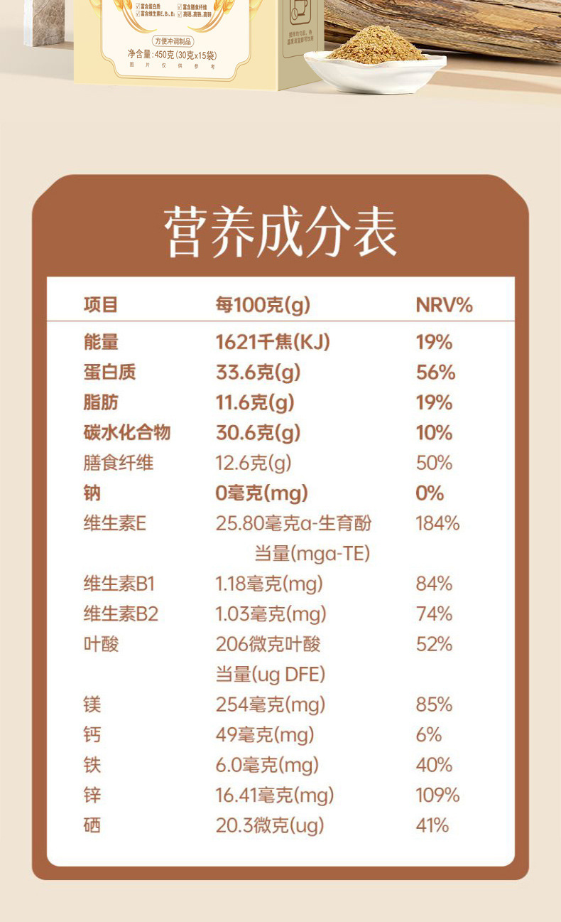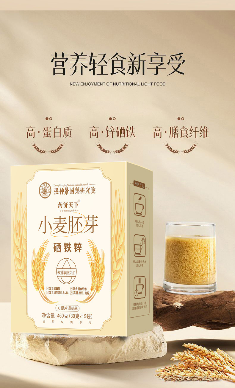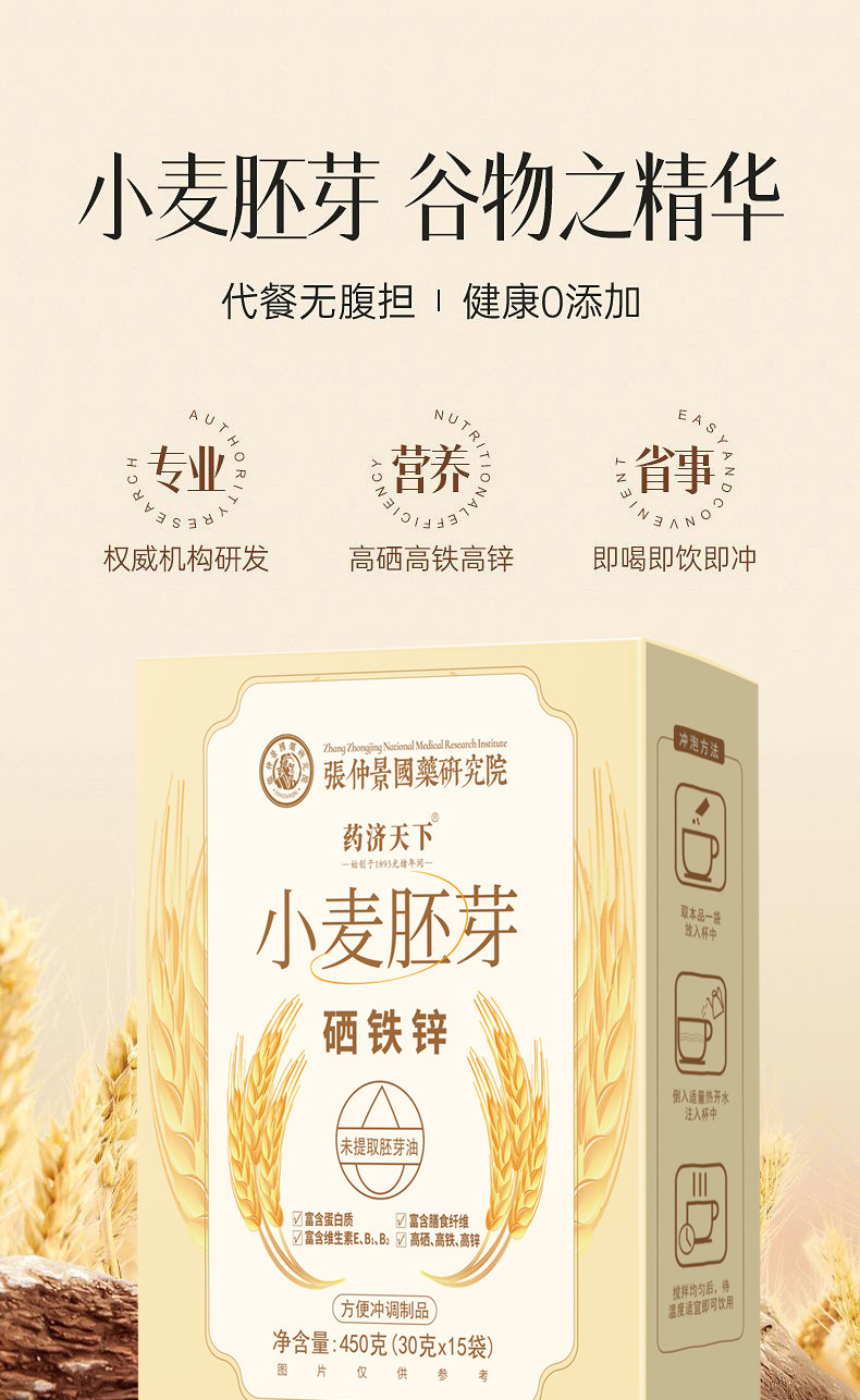 小麦胚芽硒铁锌450g便携装代餐粉谷物营养饱腹食用早餐麦片冲泡