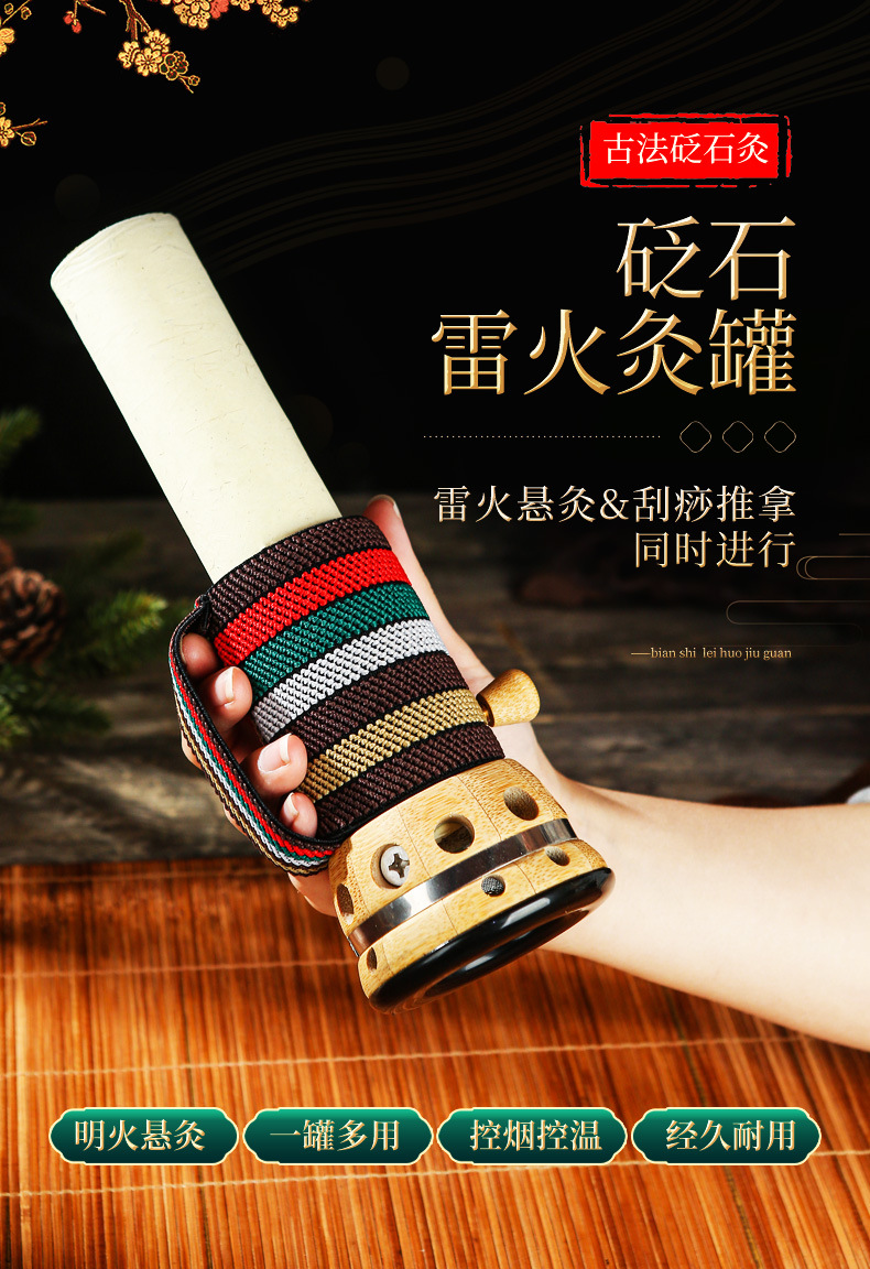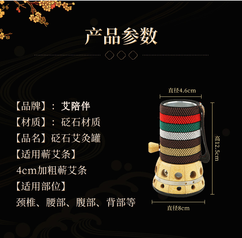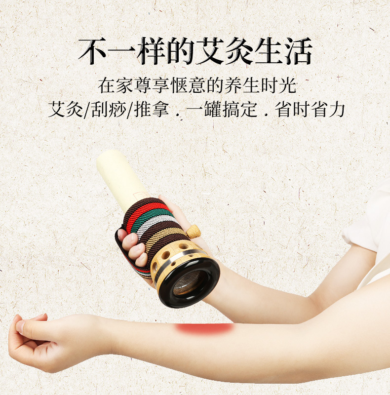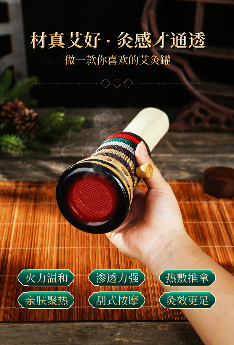 4cm砭石艾灸罐家用悬灸器具全身按摩温灸筒 蕲艾条随身灸盒刮痧仪