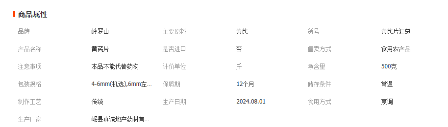 | 主营产品或服务 | 主营: 黄芪 当归 参类滋补品 | ||