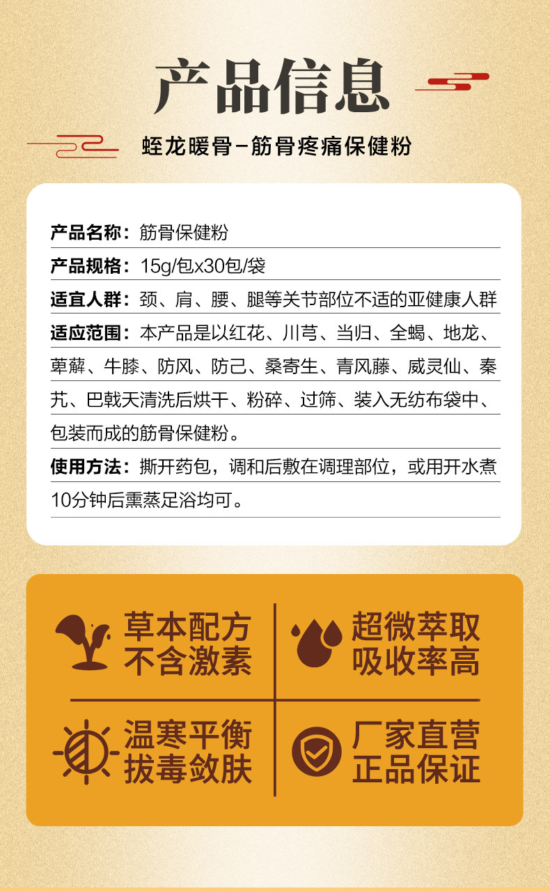蛭龙暖骨保健粉中草本浴疼痛熏蒸舒筋活络排寒泡脚家用保健粉批发