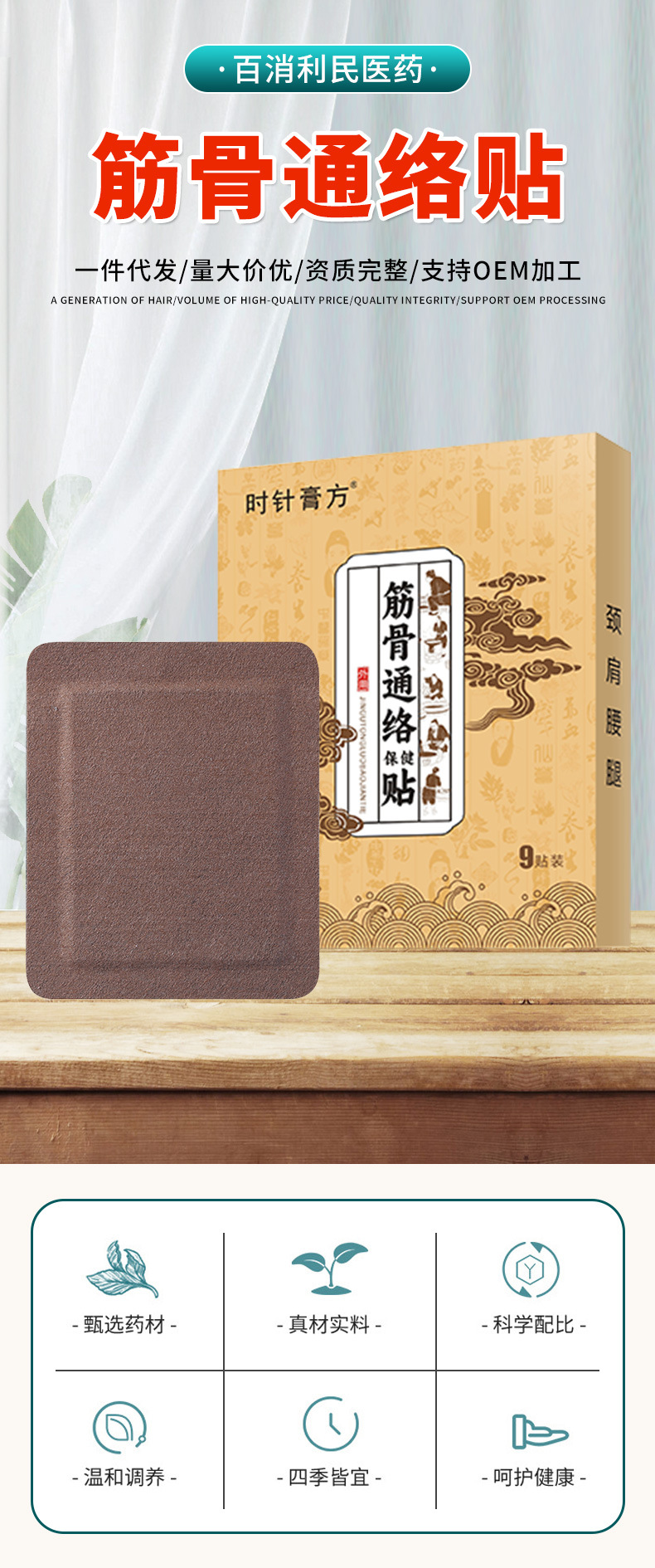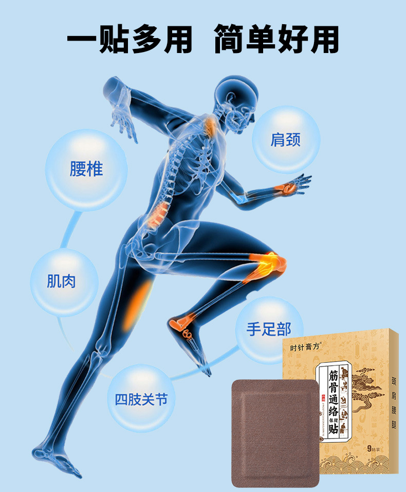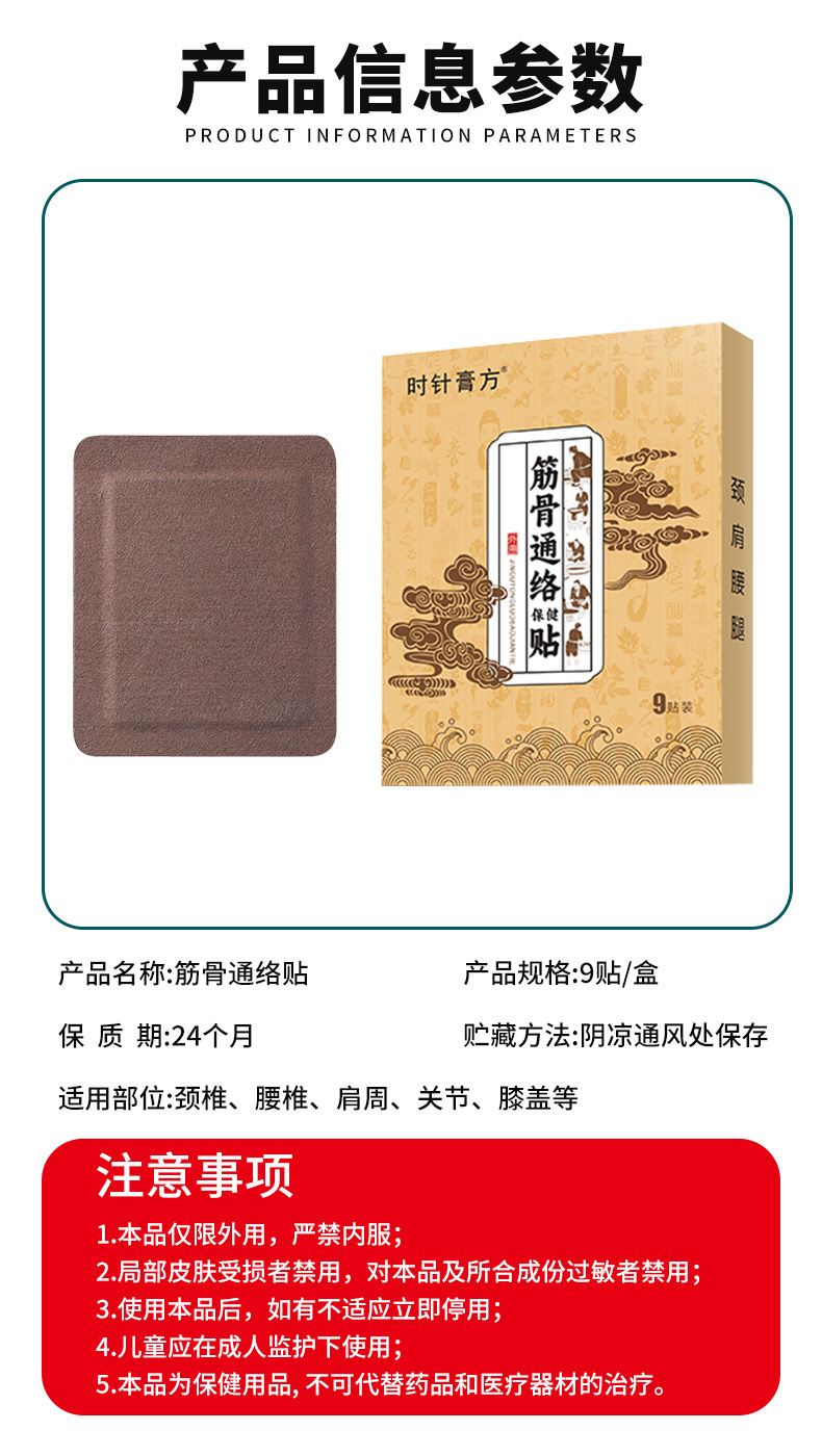 时针膏方筋骨通络贴透骨贴颈肩腰椎疼痛关节膏药贴传统老黑膏贴牌
