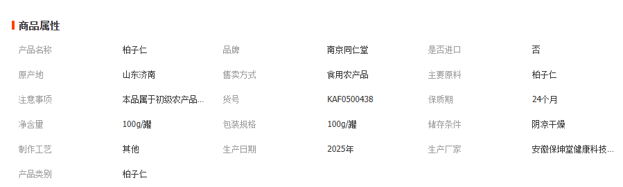 南京同仁堂 柏子仁 去壳柏子籽仁泡水泡酒喝罐装批发100g/罐