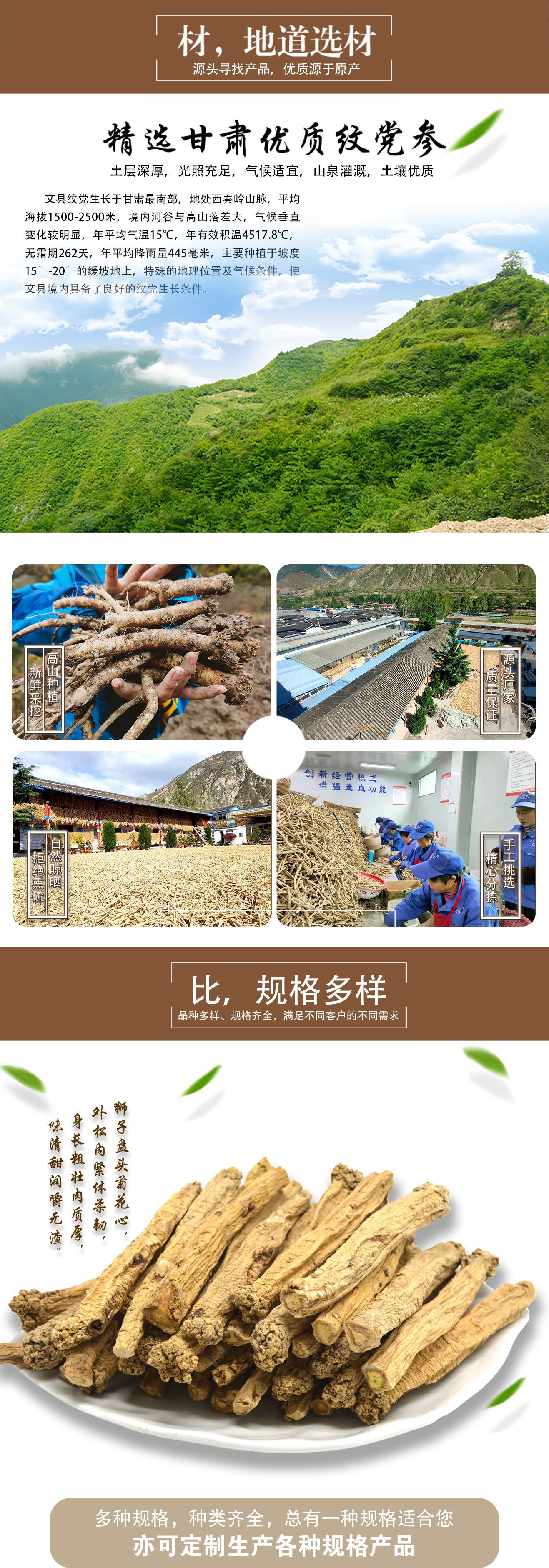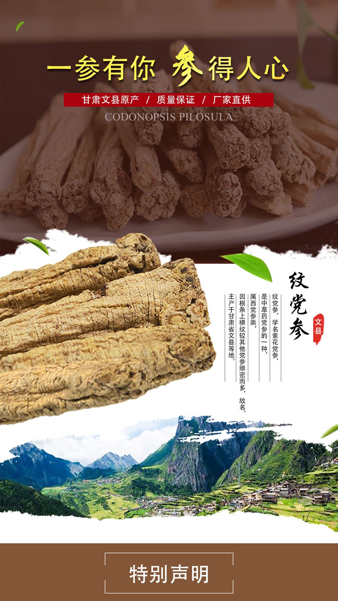 产地直供 甘肃文县纹党参无硫 纹党参中药材500g煲汤