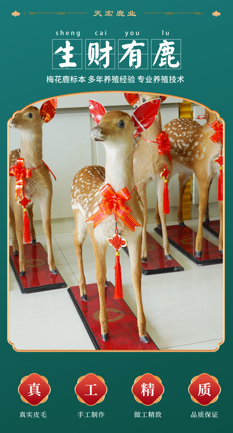 梅花鹿标本生财有鹿摆件小鹿墙壁摆件摄影道具动物标本原毛原皮
