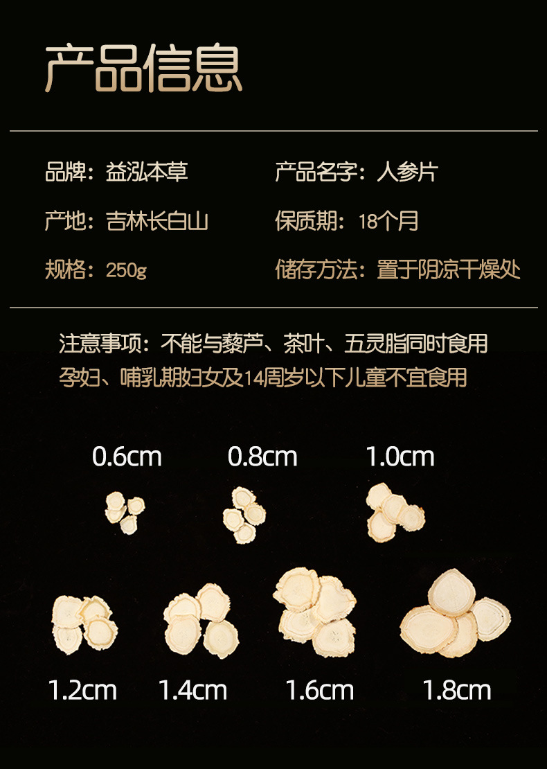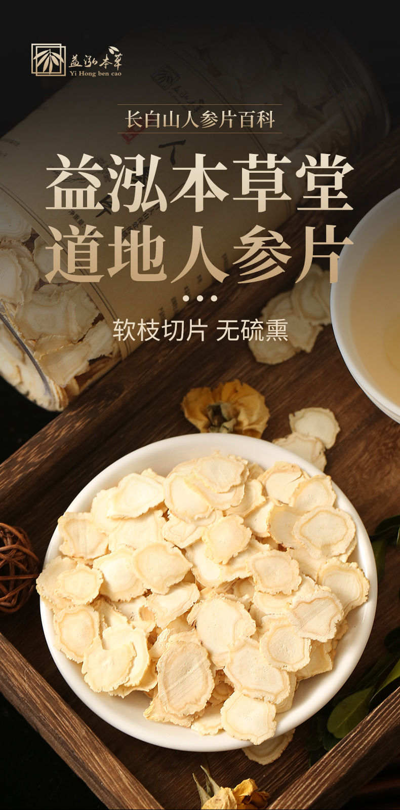 长白山人参片中药材人参片干人参整根切片东北人参切片泡水生晒参