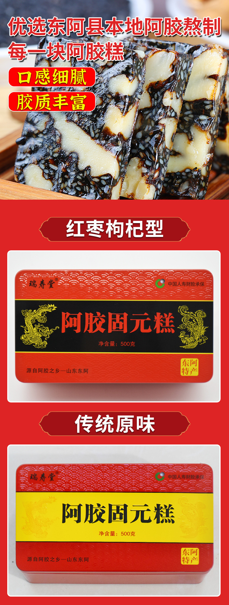 阿胶糕工厂批发阿胶固元糕膏铁盒装山东阿胶块片东阿正品阿胶糕