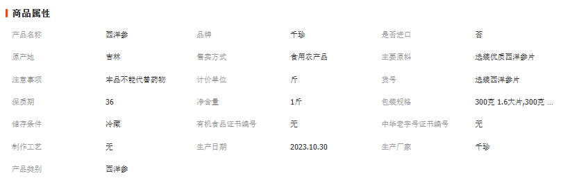 | 主营产品或服务 | 主营: 其他药食同源 其他滋补 参类滋补品 | ||