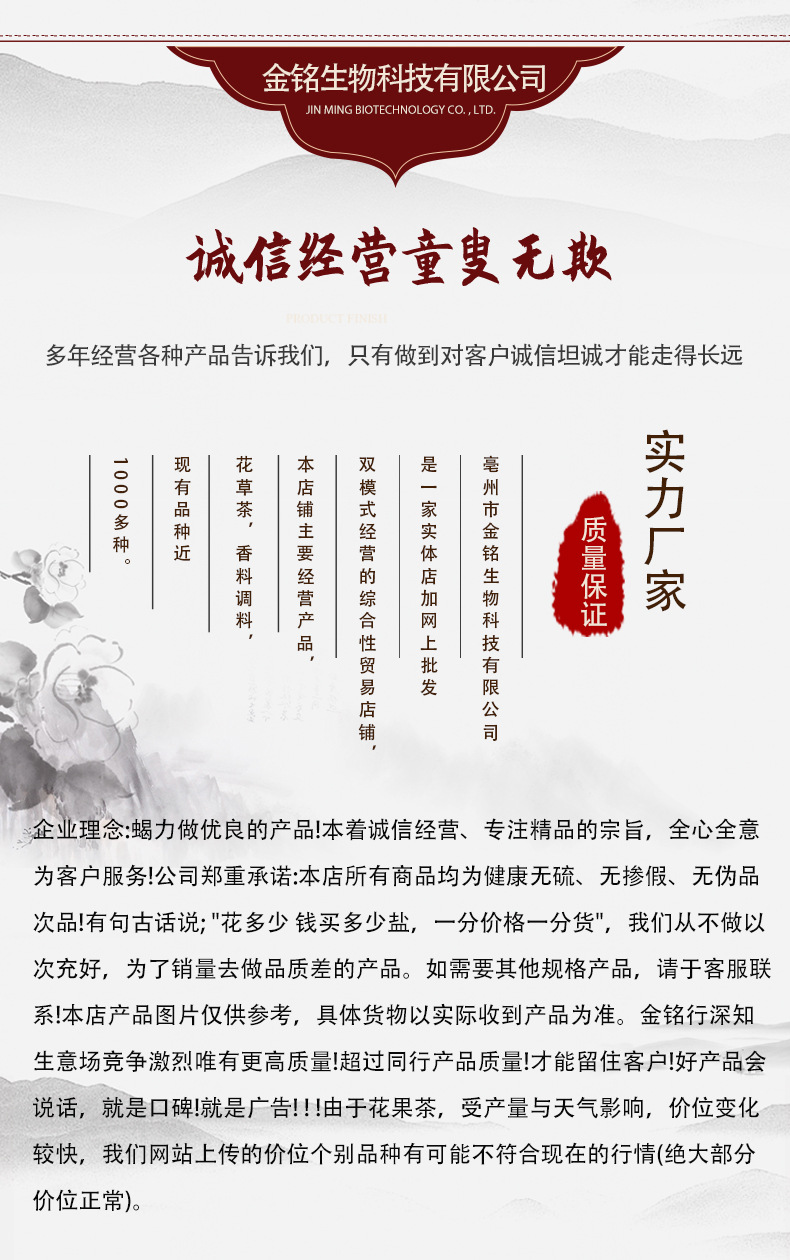 | 主营产品或服务 | 主营产品或服务: 中药材; 农产品; 中草药; 花草茶; 中药材粉; | ||