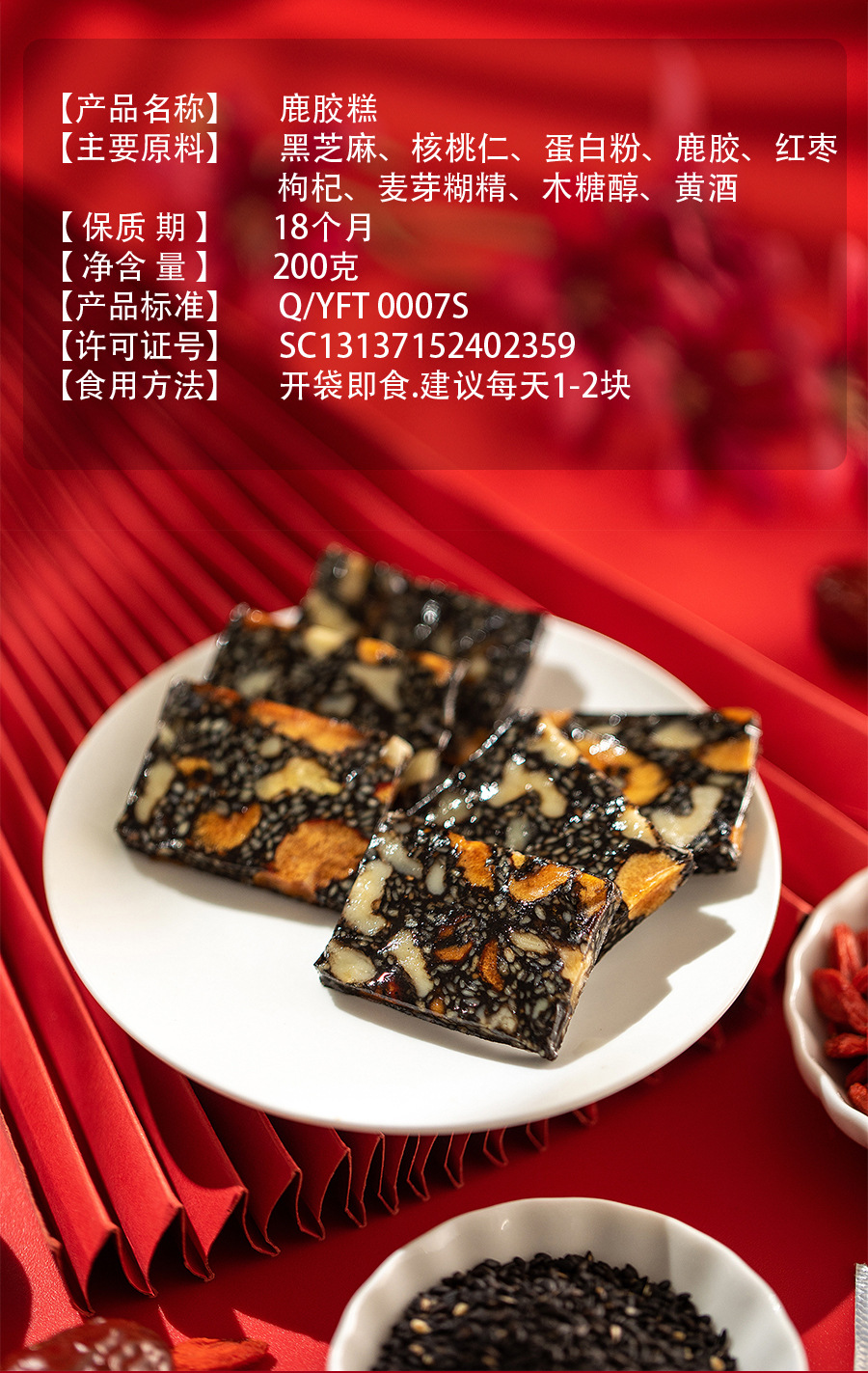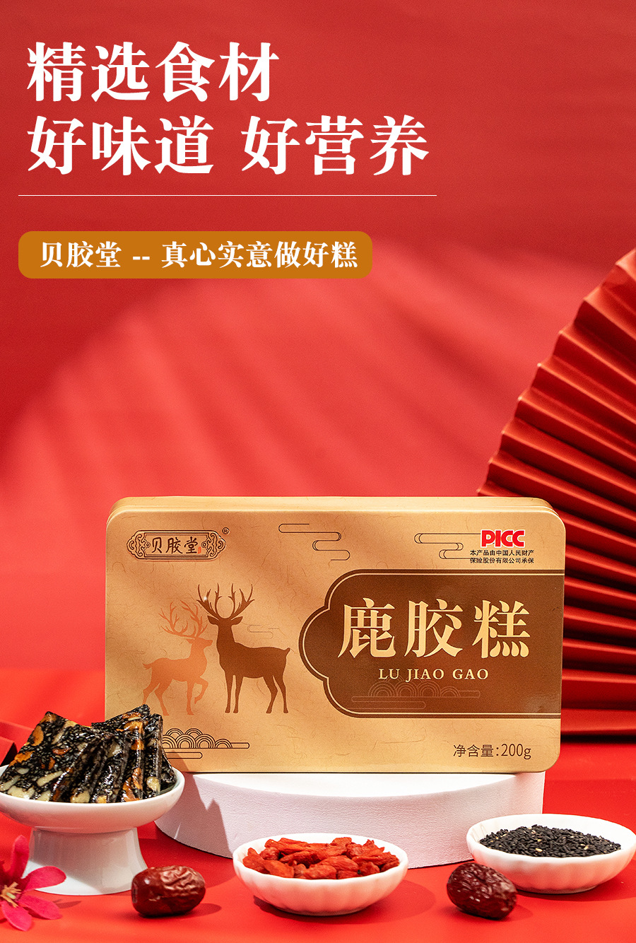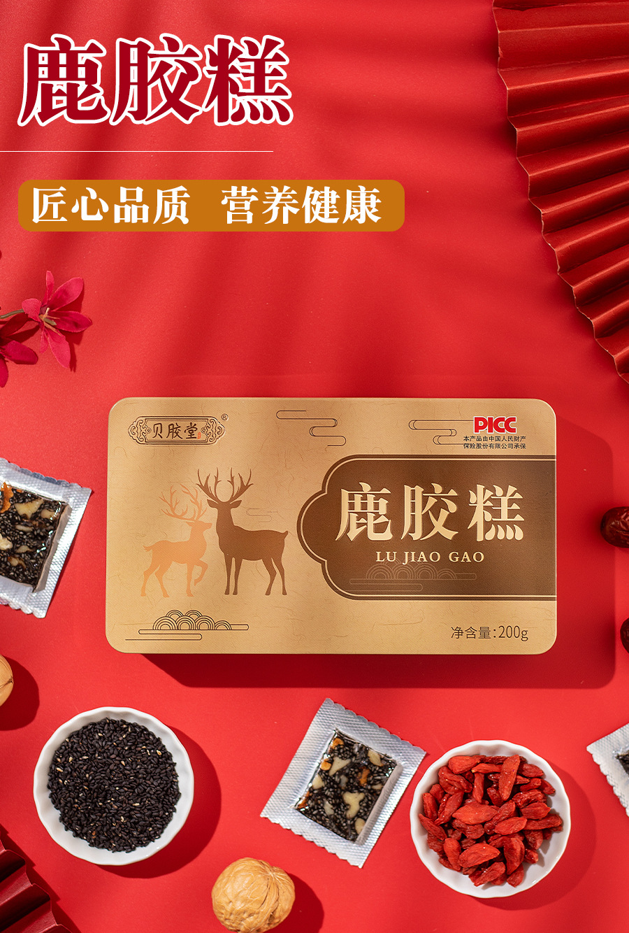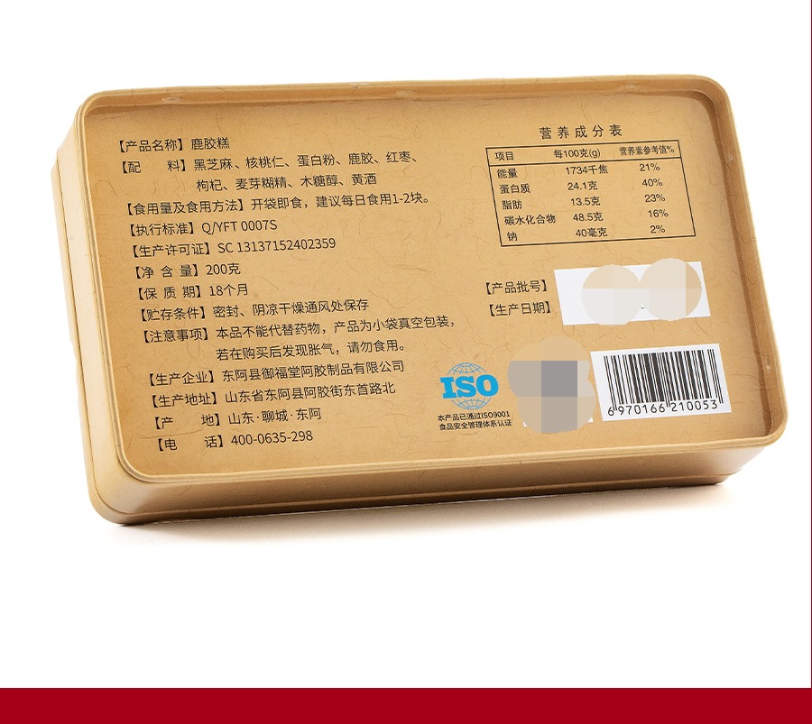 【分销】山东东阿传统滋补品鹿胶糕200克铁盒装女士即食网红带货