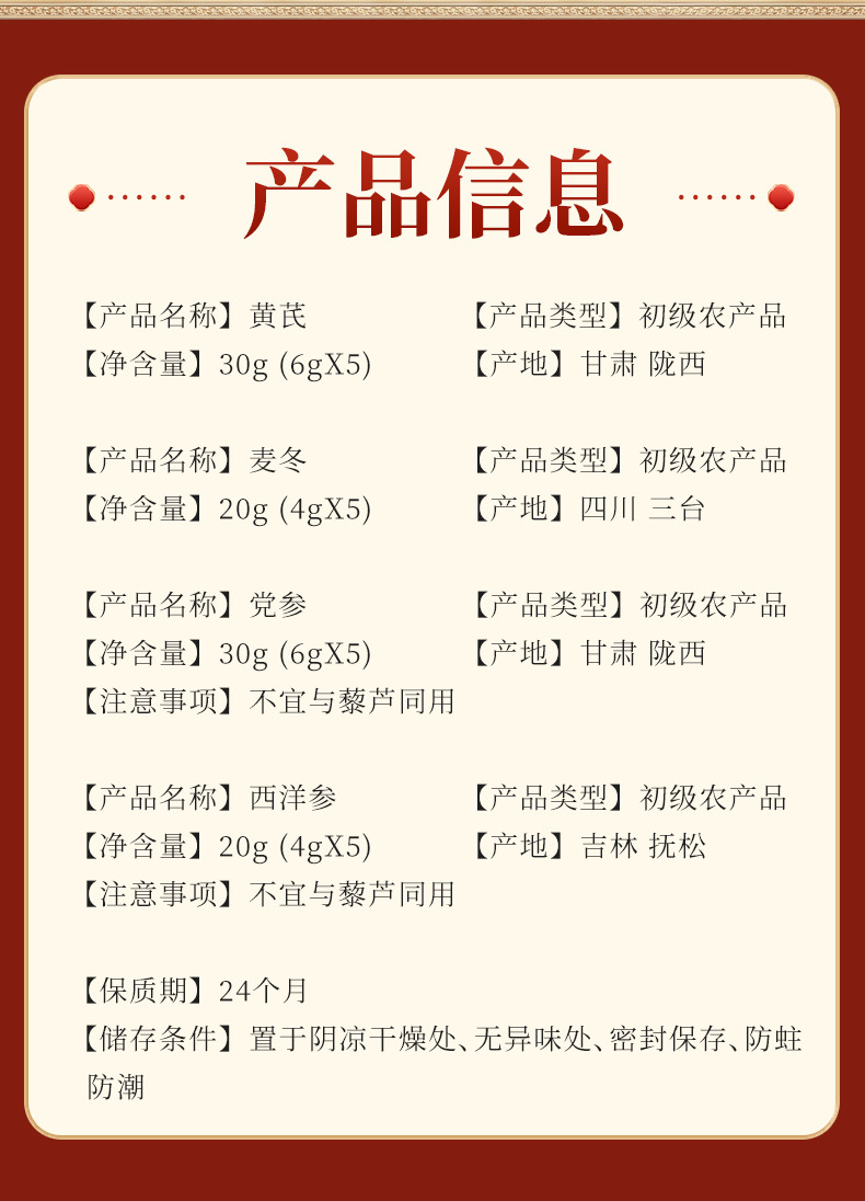 北京同仁堂四宝元气茶四宝茶组合元气四宝茶黄芪党参麦冬西洋参