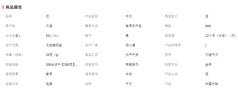 干贝瑶柱200克干货宝宝辅食特产大海鲜扇贝肉元野生海鲜淡干冷冻
